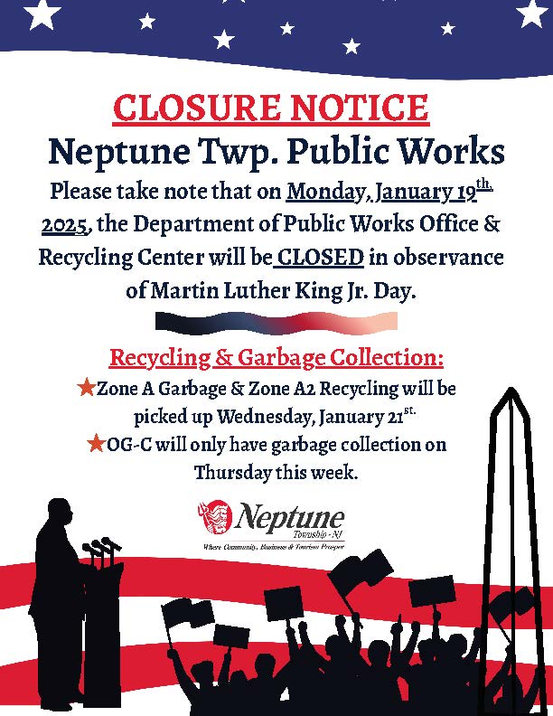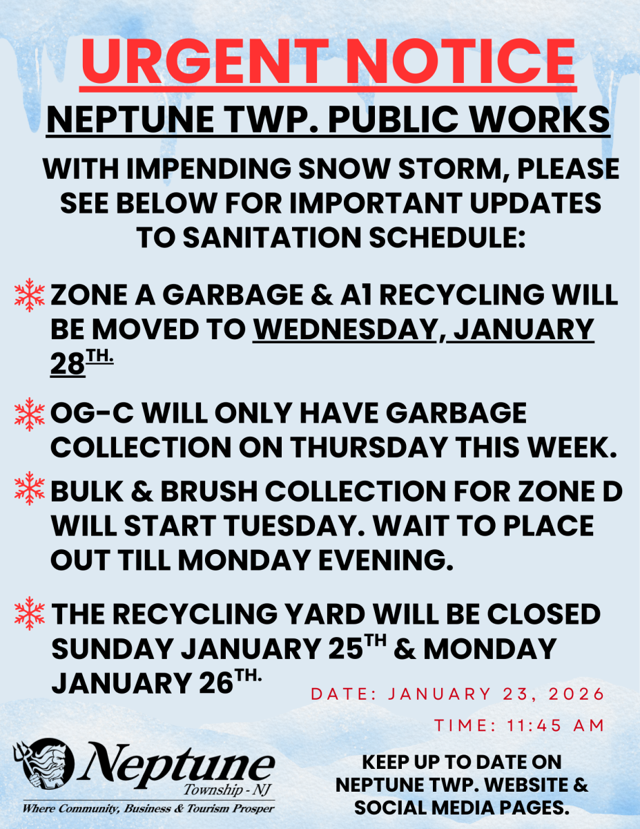 If you receive new electronic devices over the holiday season, please remember the Neptune Township Department of Public Works no longer collects E-Waste curbside.